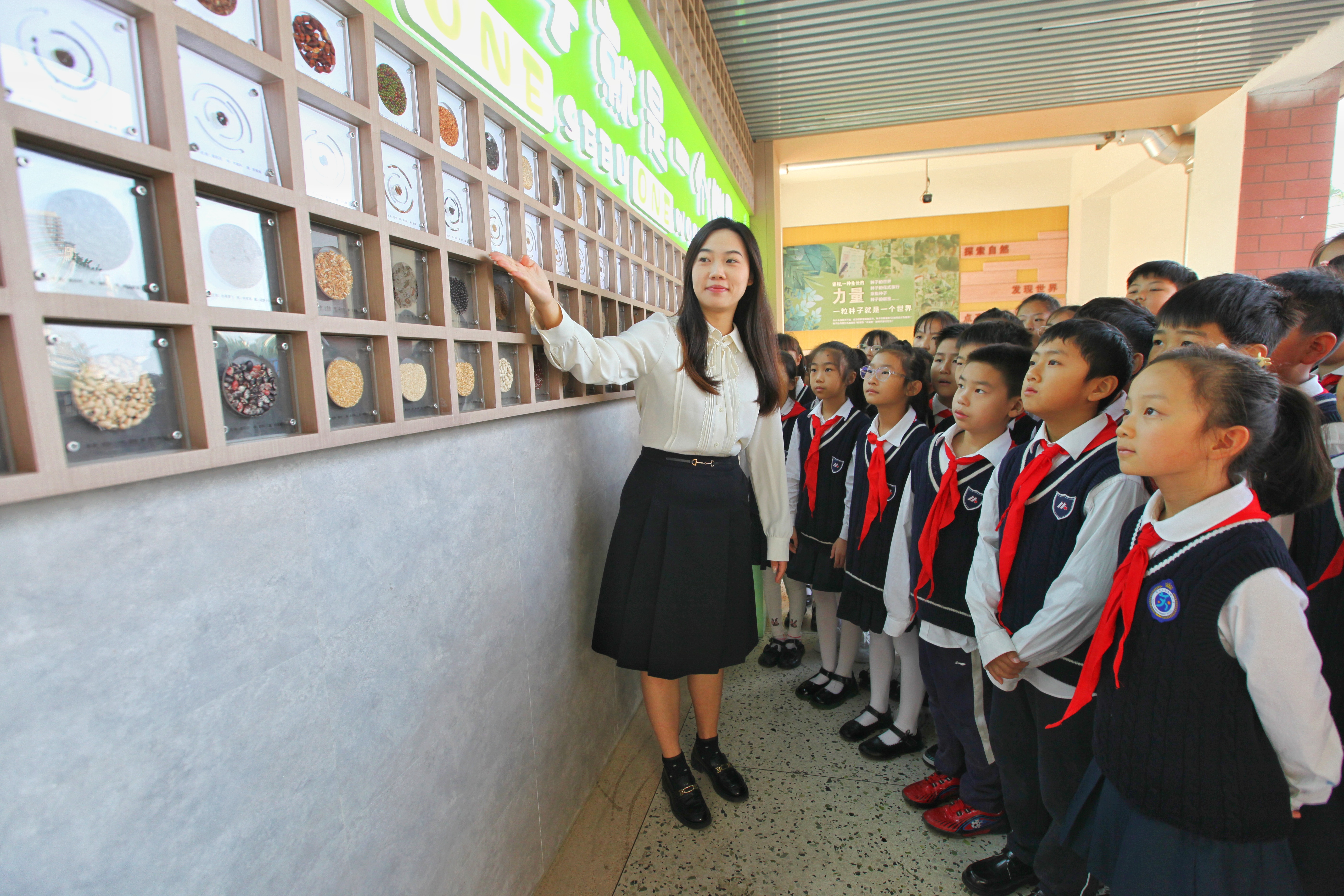 老师在给学生讲解粮食分类和生长知识。通讯员 蒯创 摄