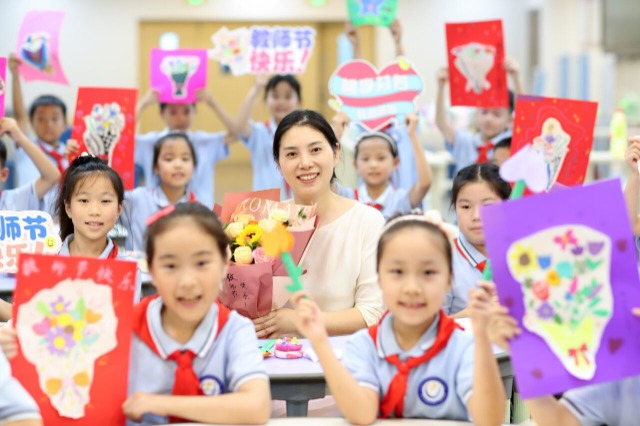教师节来临之际,江苏省泰州市姜堰区各学校开展以“巧手做礼物 感恩老师送祝福”为主题形式多样的教师节庆祝活动,向老师们表达深深的感激之情与节日祝福。