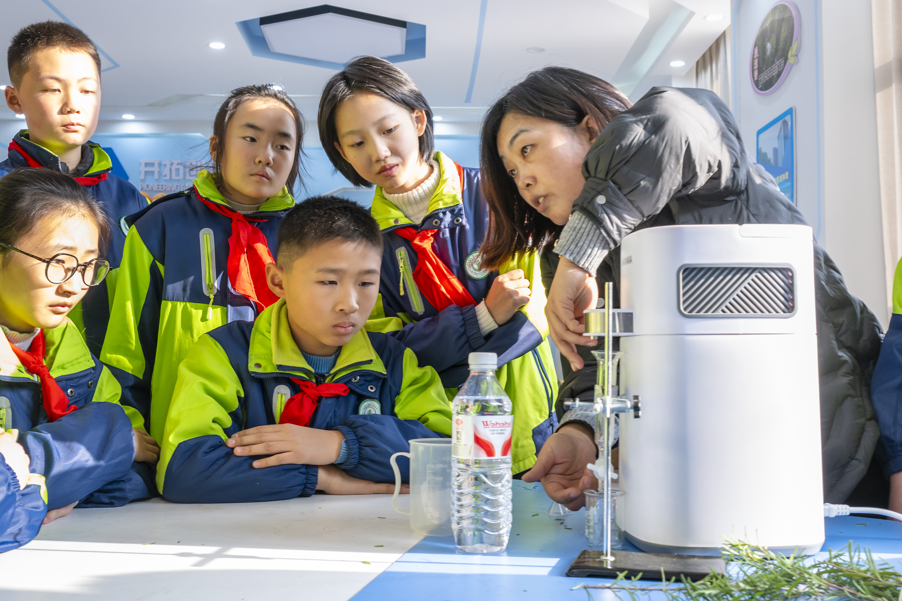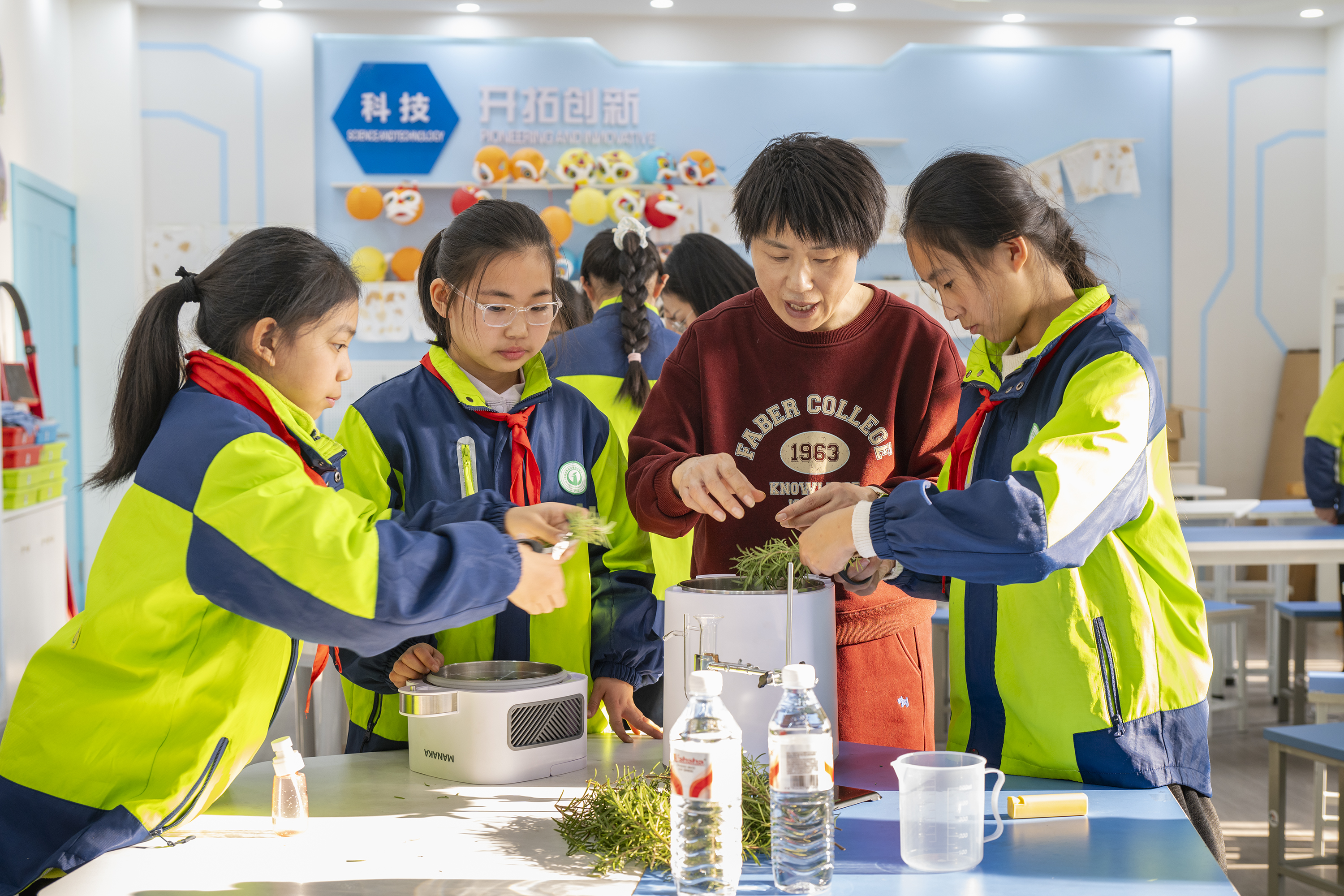 2025年12月8日,安徽省芜湖市繁昌区繁阳镇城关一小组织学生开展迷迭香提取纯露实践活动。学生在老师的指导下采摘新鲜迷迭香叶、操作蒸馏设备、观察蒸汽冷凝成纯露的过程。活动将劳动教育与特色课程相结合,让学生在实践中体验劳动的乐趣与香草的价值,感受科技的魅力。